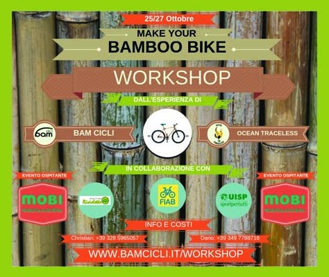 Durante la tre giorni di MoBi ospiteremo un workshop organizzato da Bam Cicli per costruire la propria bicicletta in bambù. Gli organizzatori daranno la possibilità a tutti i partecipanti di vivere un esperienza altamente creativa: forniranno loro le indicazioni e l’attrezzatura per realizzare, sotto la loro supervisione, un telaio di tipo “Urban”.